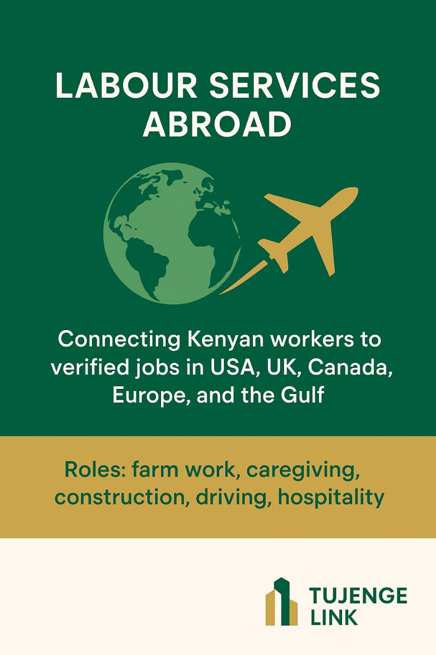 Tujenge Link connects skilled and unskilled workers with legitimate job opportunities overseas — including caregivers, construction teams, drivers, housekeepers, and farm workers in the USA and other approved destinations. We ensure safe placement, verified employers, and smooth processing for all applicants.